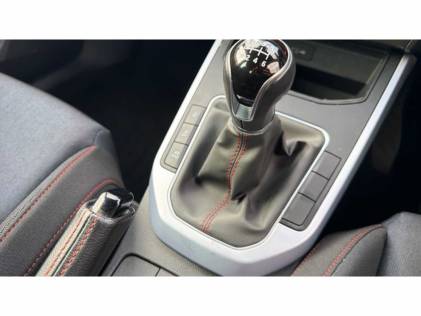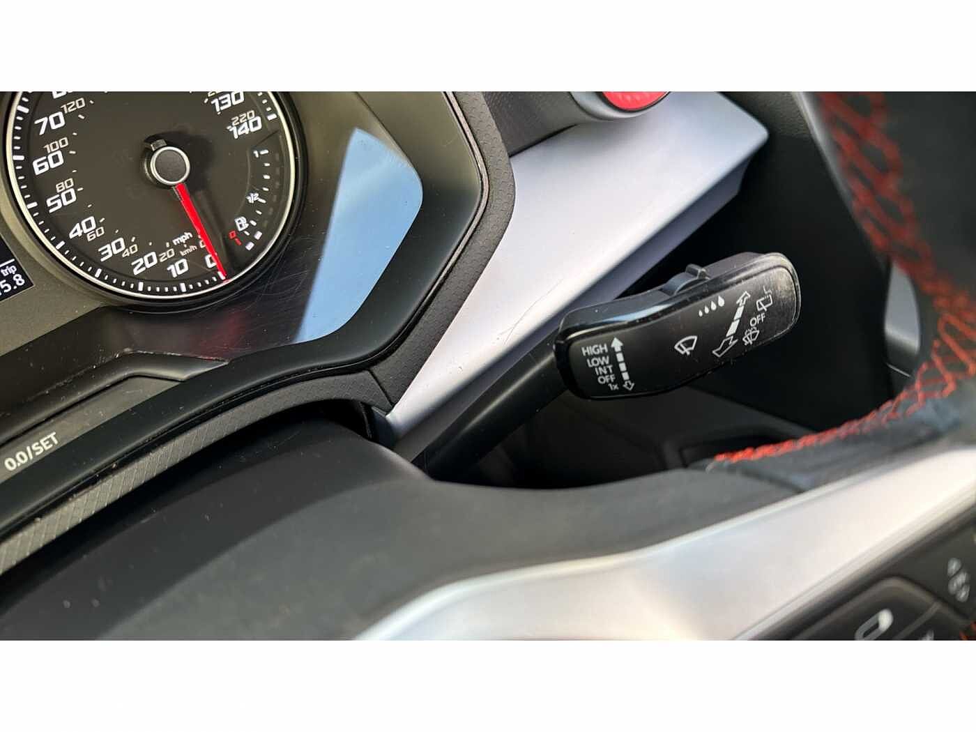 - Perforated flat bottomed leather steering wheel/gear knob/handbrake with red stitching and FR logo